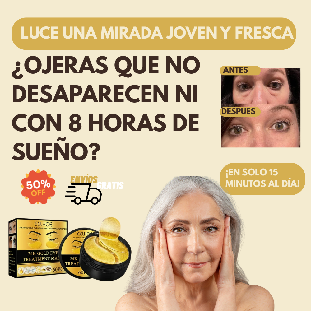 ¡Un antes y después que notarás en minutos! Nuestros Parches de Ojos con Oro 24K actúan de forma intensiva para reducir ojeras, reafirmar y devolver la luminosidad a tu mirada, permitiéndote lucir un contorno de ojos más firme, descansado y rejuvenecido.
